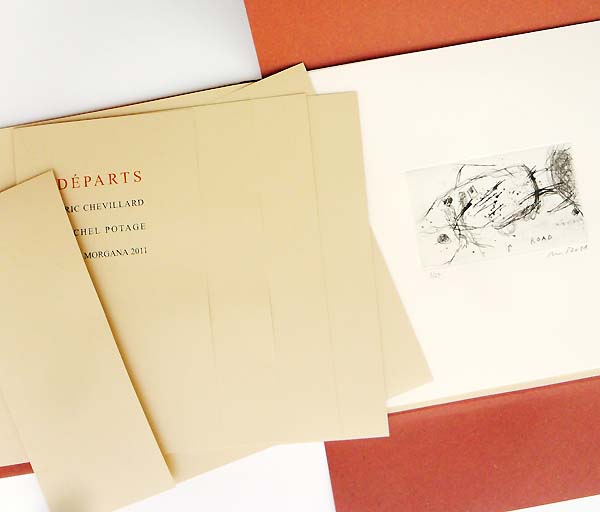 27 exemplaires comportant chacun sept pointes-sèches de Michel Potage tirées par l’atelier Mario Boni à Paris. Portefeuille de Delphine Marseille.