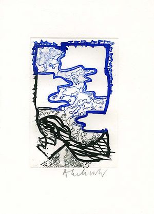 40 exemplaires sur Arches comportant chacun trois eaux-fortes en deux couleurs signées et une suite des trois gravures sur vieille paperasse notariée.