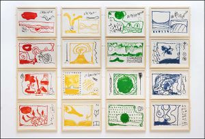 Les cinq eaux-fortes en couleurs, suite de grand format des cinq eaux-fortes retravaillées en noir, et seize lithographies en couleurs signées.